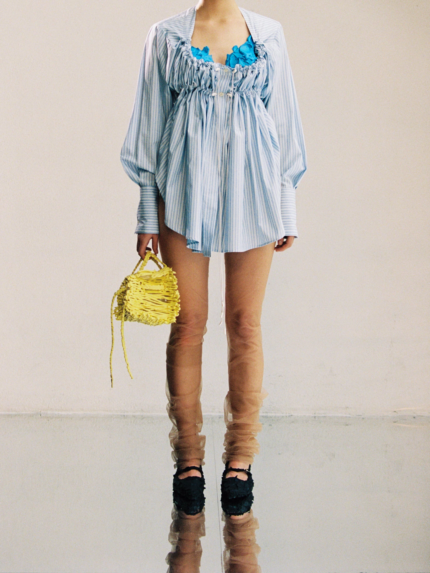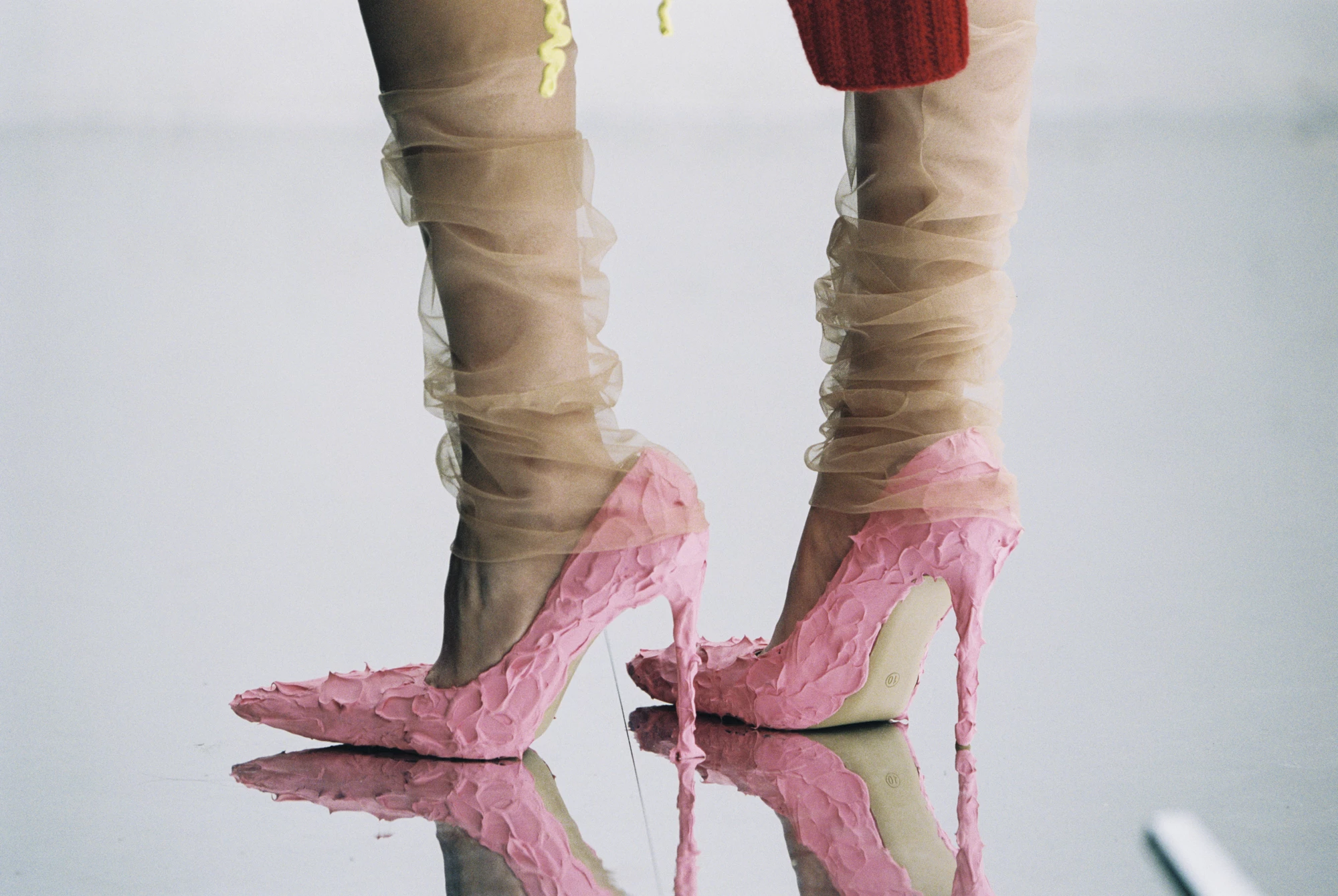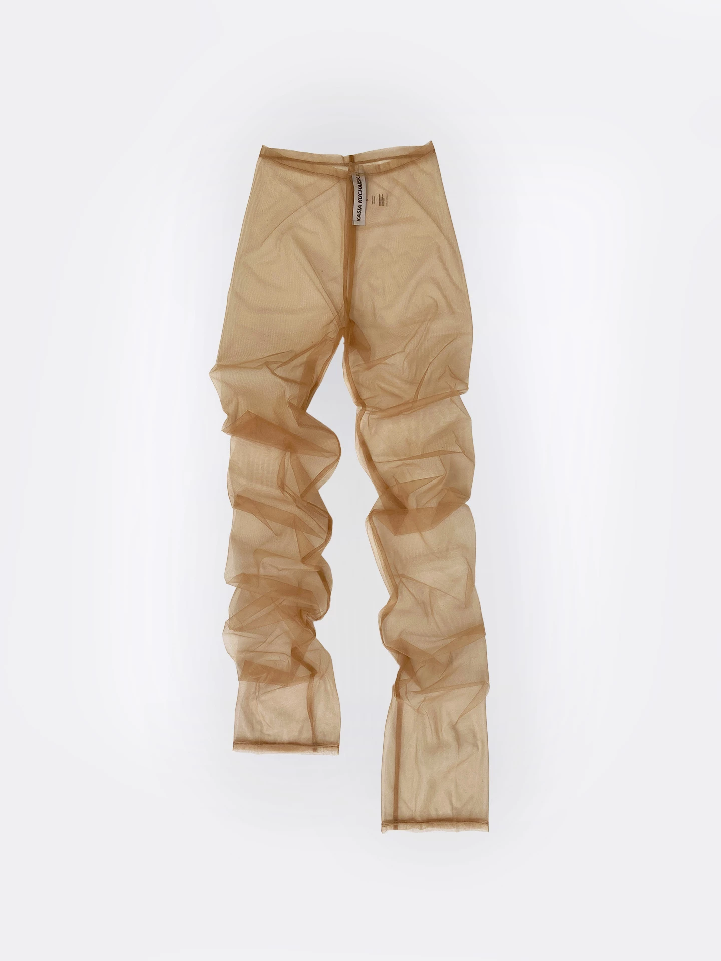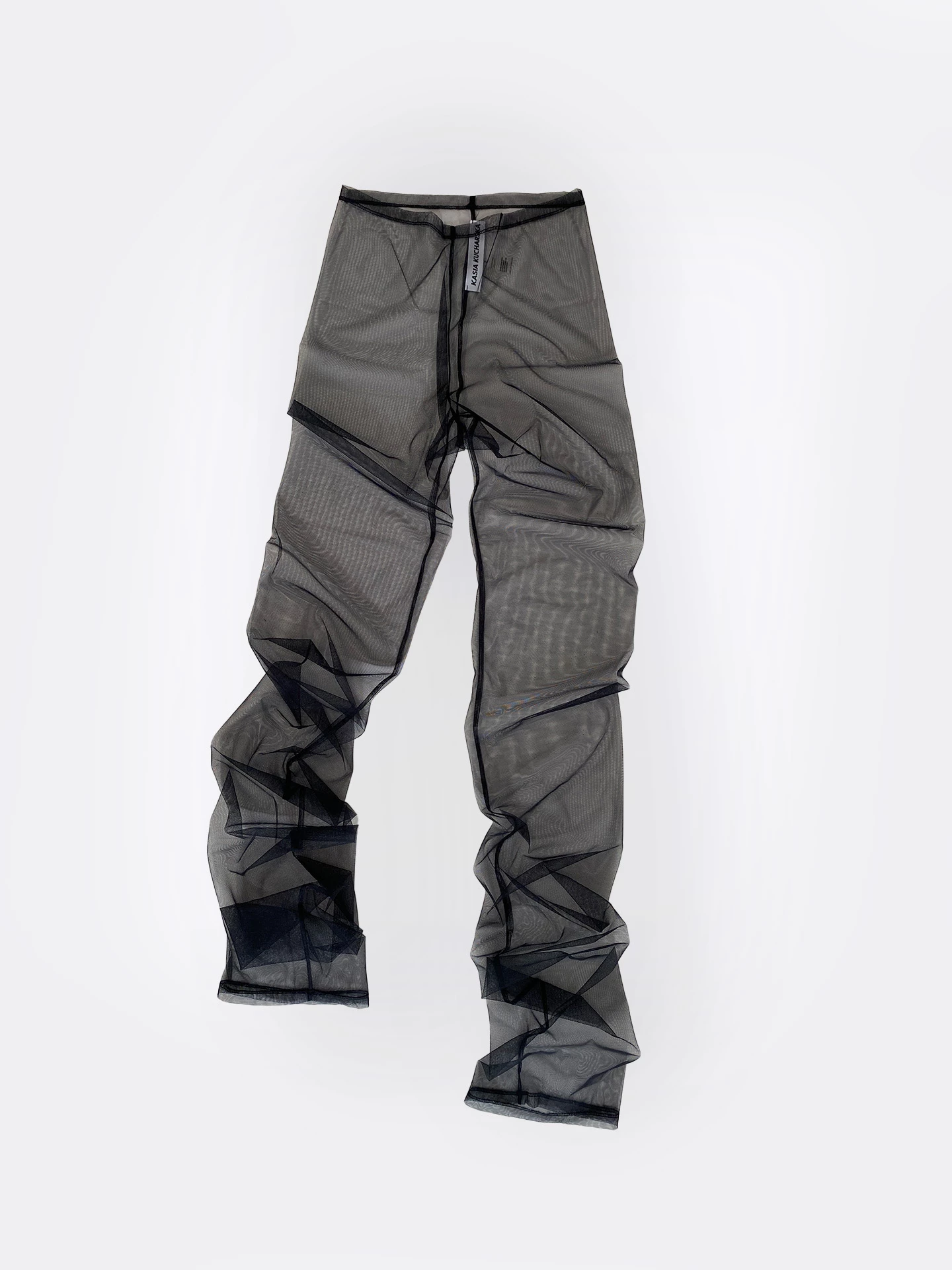 Our translucent leggings are made from mesh fabric and have an extra-long cut, giving them a ruffled look at the bottom.