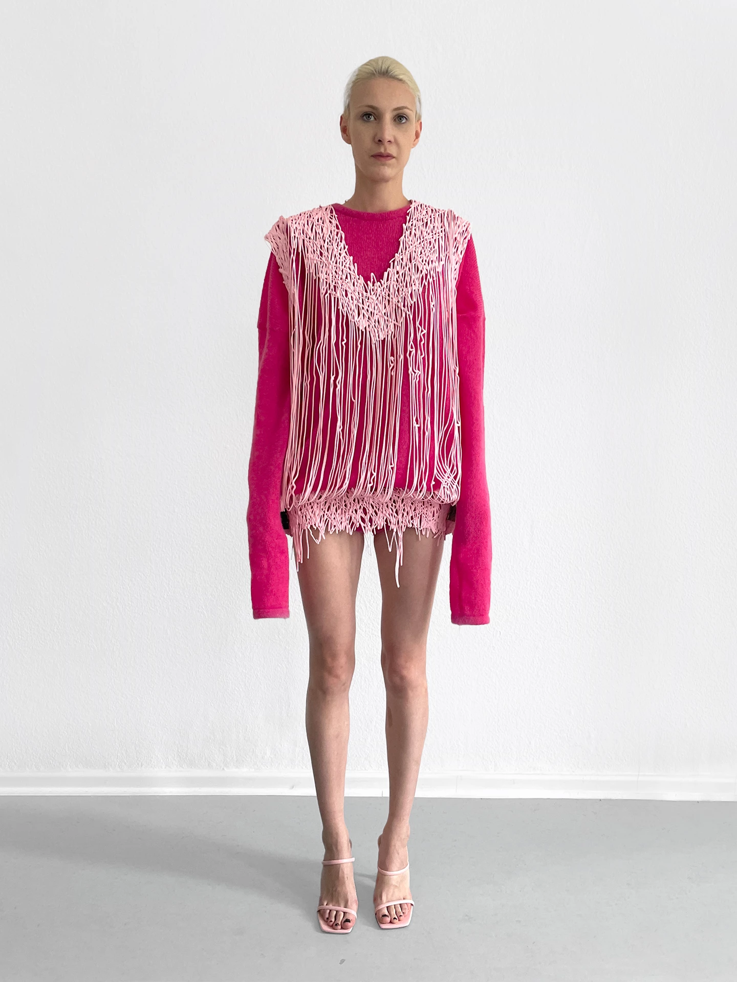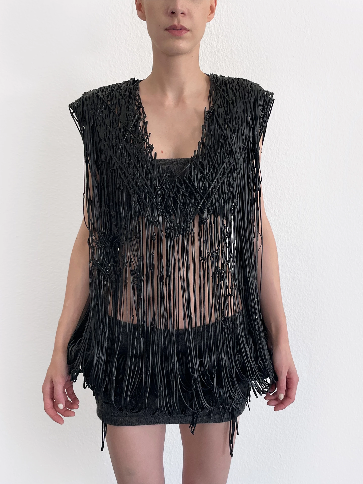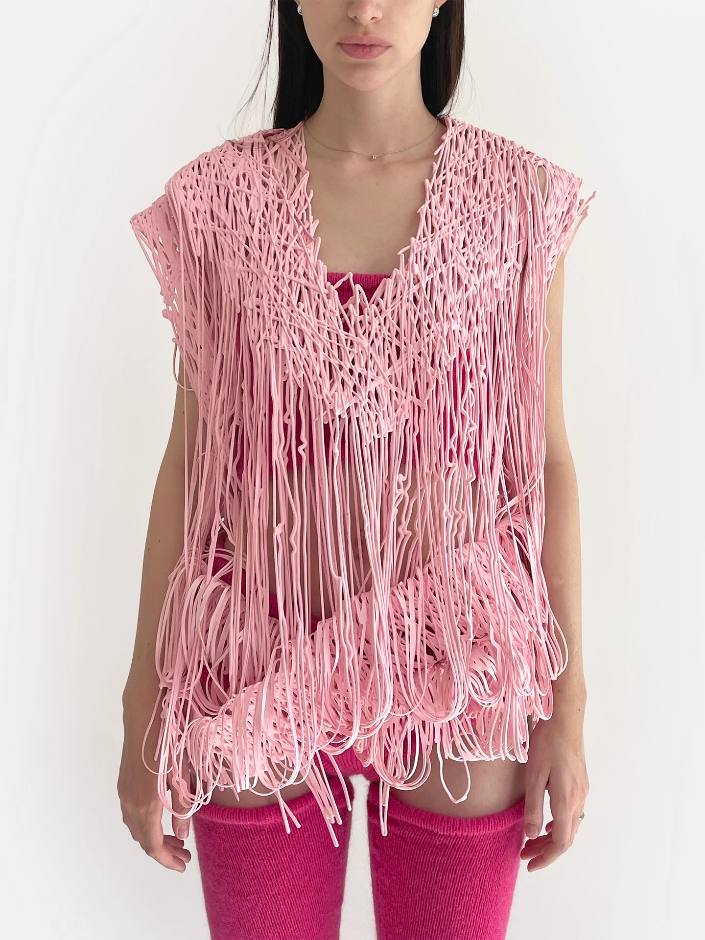 Our Vest is made of elastic strings with a loose and comes in one size.